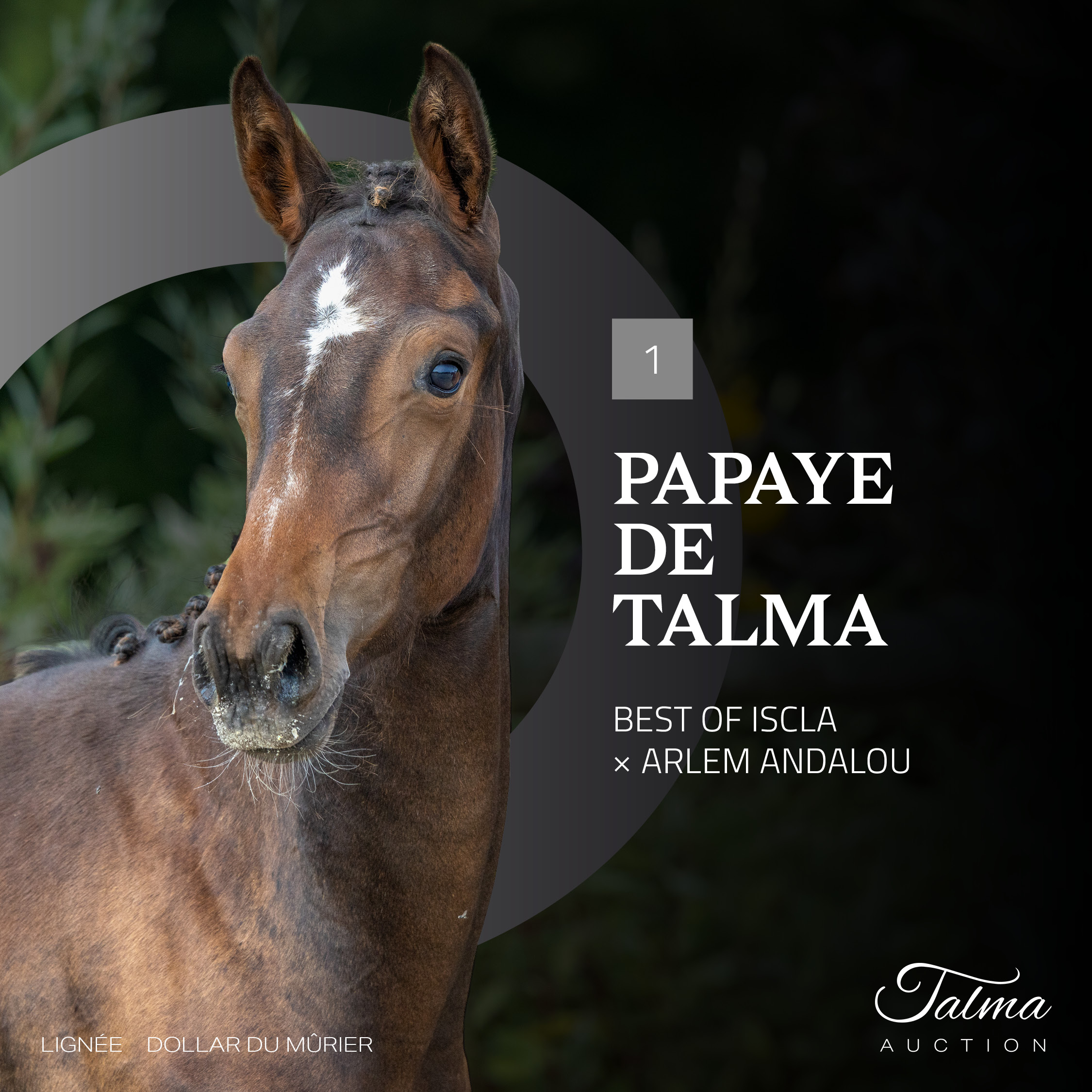 Le mot de l’éleveur: Cette pouliche a déjà beaucoup de charisme. Elle a énormément de sang avec de très beaux tissus. Bondissante, elle est très légère dans sa locomotion.