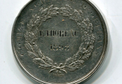 ARGENT - " COMICE AGRICOLE D'ORLEANS " - grande médaille classe argent en argent 45 mm - blason d'orléans couronné entre 2 palmes de chêne et laurier - Au revers, attribution dans une couronne de laurier et chêne : " R. THOREAU 1893 ". - sur la tranche poinçons argent et corne - 47,42 grammes - TTB