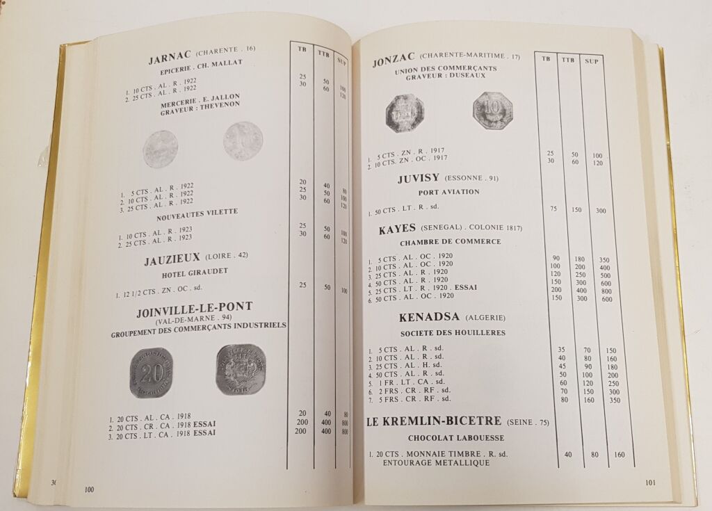 265 pages, monument de recherches, toutes les monnaies émises en France et dans ses diverses colonies, décrites et cotées en 3 états de conservation, mais aussi les variétés, les contremarques ....de ces monnaies d' urgence autorisées à circuler à partir des pénuries de 1914.