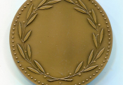 " CONFEDERATION FORCE OUVRIERE " - Médaille classe bronze en bronze. Épis de blé en centre sur soleil rayonnant et roue dentée - revers : couronne de 2 palmes d'olivier, centre pour attribution - sur la tranche poinçon corne et bronze, date de frappe 1974.