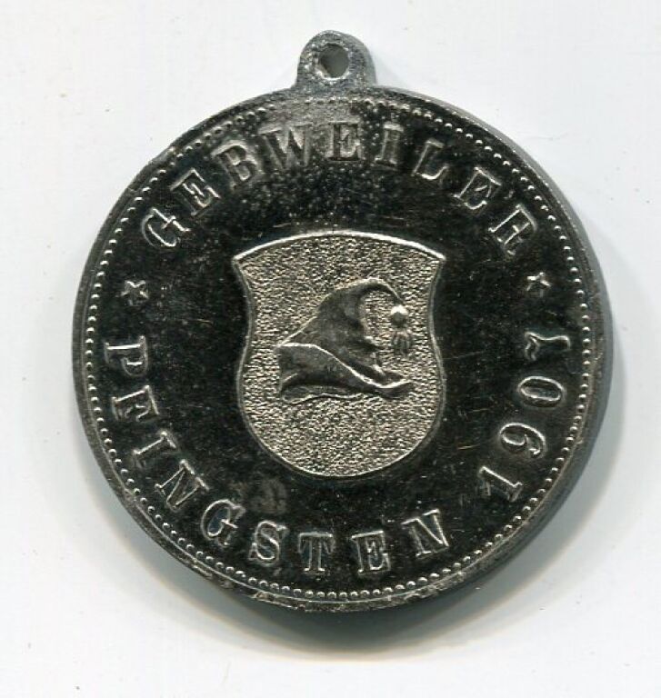 " GEBWEILER * 1907 * PFINGSTEN blason de ville " bonnet Albanais ". Revers : ERINNERUNG A.D. 9. KREISFEST * ELSASS-LOTHRINGENS DER AMATEUR ATHLETEN,