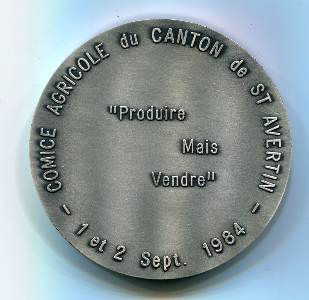 JOUE LES TOURS (37) - Médaille d'honneur de la ville et commémorative à l'occasion du "comice agricole du canton de St Avertin "produire mais vendre" 1 et 2 septembre 1984".