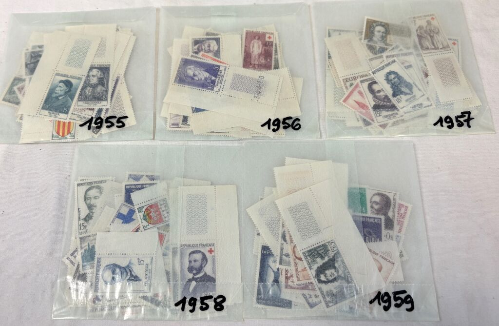 FRANCE- 1955 à 1959 - CINQ ANNEES COMPLETES comprenant les 227 timbres émis. Du n° 1008 au 1229 - Timbres neufs **
