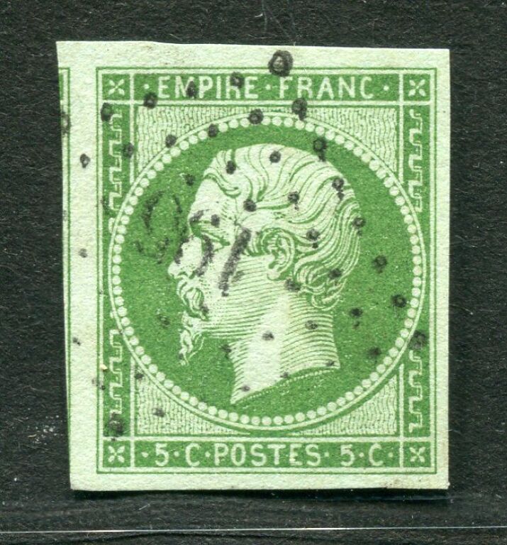 FRANCE - n° 12 c - 5c nuance vert foncé sur vert 2e EMPIRE, NAPOLEON III tête nue.