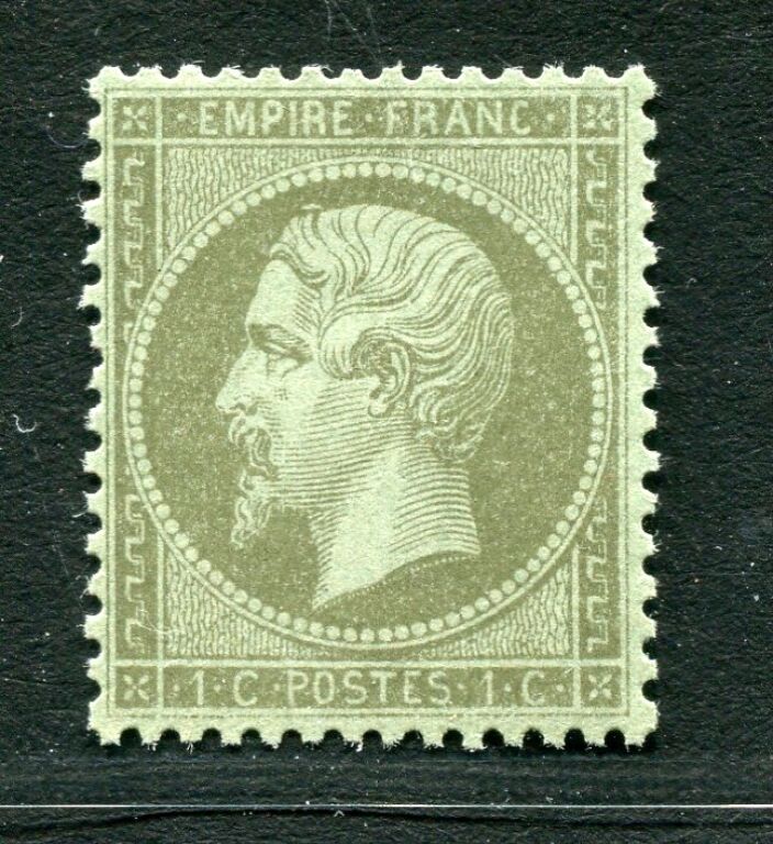 FRANCE - n° 19a - 1c vert bronze 2e EMPIRE, NAPOLEON III tête nue Dentelé.