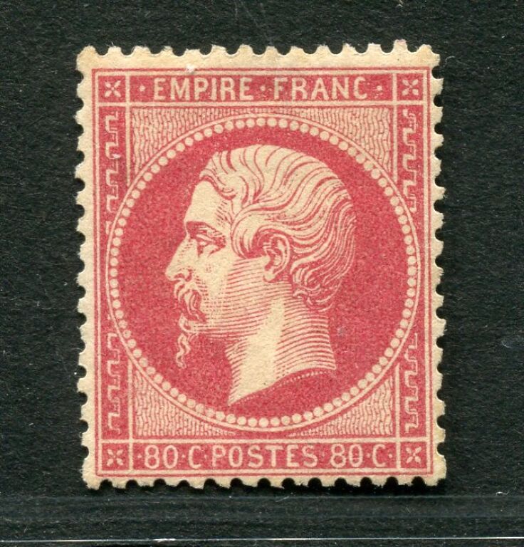 FRANCE - n° 24 - 80c rose 2e EMPIRE, NAPOLEON III tête nue Dentelé.