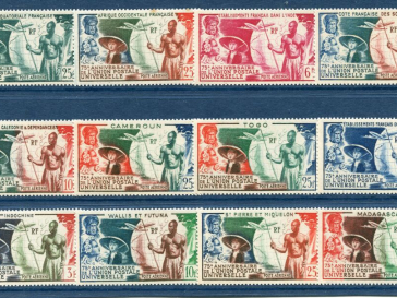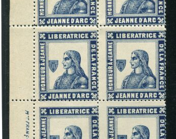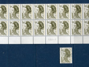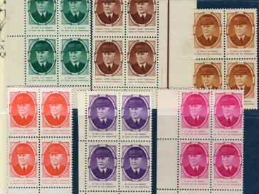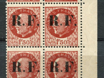 Bloc de 25 timbres AVEC RARE VARIETE (case 16) TIMBRE NON SURCHARGE - NEUFS **