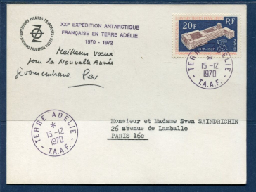 carte au sceau de la Comédie "Meilleurs Vœux" avec envoi autographe signé, au stylo bille : " mes… ma bonne amie M. Escandre ".