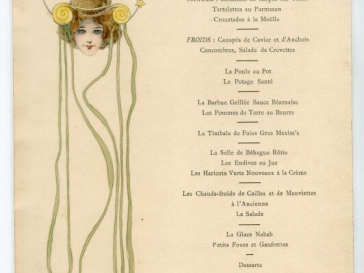 TRES BEAU MENU ART NOUVEAU, du diner chez MAXIM'S du 14 octobre 1901.