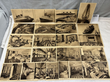 SOUVENIR du PAQUEBOT NORMANDIE - Cie Générale Transatlantique 1932 / 1935 - Le plus grand des paquebots du monde construit aux chantiers de Penhoët / St Nazaire, Ligne Le Havre à New - York. - Collection complète de 24 cartes postales des éditions Bloc f