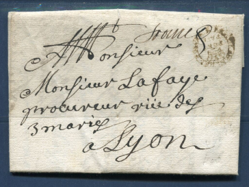 FRANCE - HISTOIRE POSTALE PRECURSEURE du 17e siècle - RARE PLI au départ de PARIS, daté du 18 octobre 1692, pour CHALON sur SAONE "en Bourgogne " - " soit rendue promptement " à Monsieur Sousselier administrateur à la Cour rue au change ou en cas d