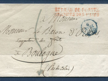 LOUIS XVIII 2e RESTAURATION - Lettre en PORT PAYE de Paris pour Troyes 5 octobre 1822 - Porte griffe de paiement " 60 P.P. " du bureau " C ", frappe en noir dans un cadre à pans coupés (Rochette & Pothion n° 2735) - Porte de plus griffe linéaire "