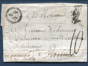 Beau pli en PORT DU pour GENES du 21 août 1759, 4 x 43 mm, Lenain n° 3.