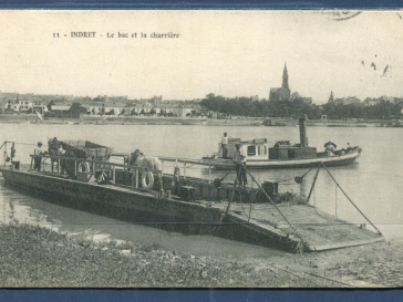 INDRET (44) hameau partie de la commune d' INDRE - Très gros plan rare carte postale 1915 "le Bac et la Charrière " - vue générale de la Loire, au 1er plan le bateau vapeur cabané (bac) qui tracte la charrière sur laquelle pouvait monter les charriots
