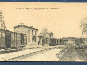 MONTMIRAIL (51) - LA GARE des CHEMINS de FER DEPARTEMENTAUX. Ligne de la Ferté sous Jouarre - gros plan général des installations - circa 1925.