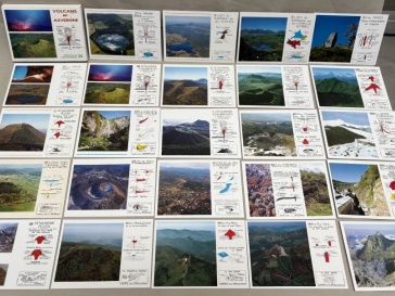 VOLCANS en AUVERGNE - collection complète de 24 cartes postales pédagogiques et scientifiques des " éditions artisanales " au bourg d'Aubiat (63) 1991 - photos de H. Monestier.- 24 cartes avec belles vues légendées, expliquées.