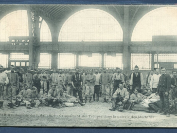 Très beau plan très animé " campement des troupes (chasseurs à cheval) dans la galerie des machines - Marmusse 6.