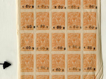 le numéro 1 d' Arménie : timbre de Russie non-dentelé 1 K jaune avec surcharge " K 60 K ".