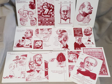 HOMMAGE à Gustave Arthur DASSONVILLE et au " BRULOT ( * ) - collection de six cartes postales caricatures "portraits" par l'illustratrice " NATY " Debrézé -