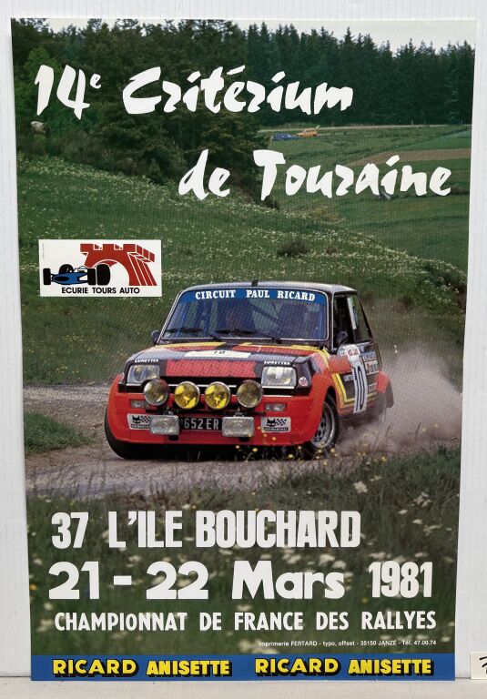 AFFICHE - ECURIE TOURS AUTO - 14e CRITERIUM AUTOMOBILE de TOURAINE