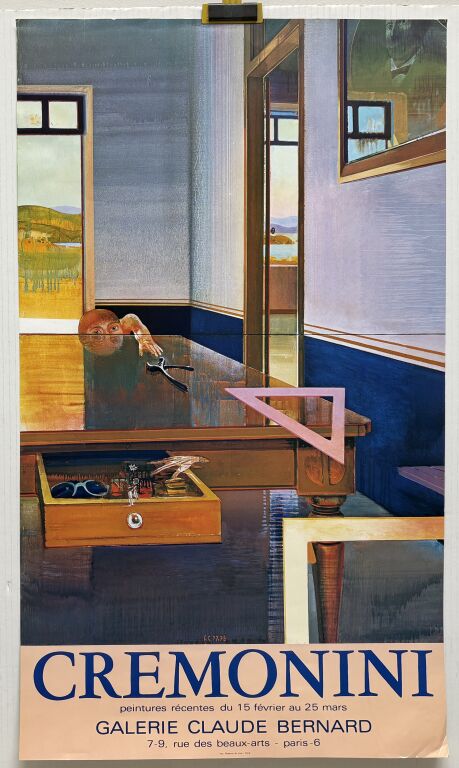 AFFICHE LEONARDO CREMONINI ( 1925 / 2010 ) - promotion de son exposition " peintures récentes " à la Galerie Claude Bernard, rue des beaux arts à Paris, du 15 février au 25 mars 1979. - offset couleurs 77 x 44 cm.
