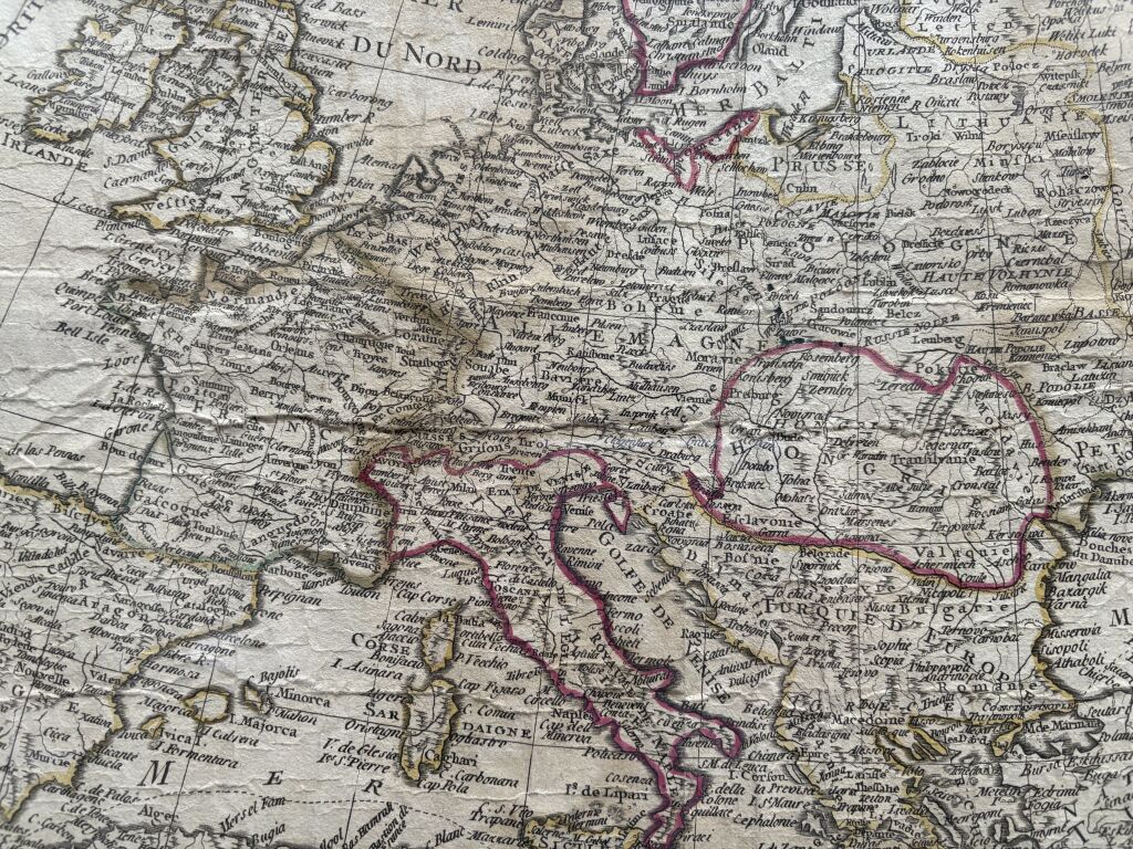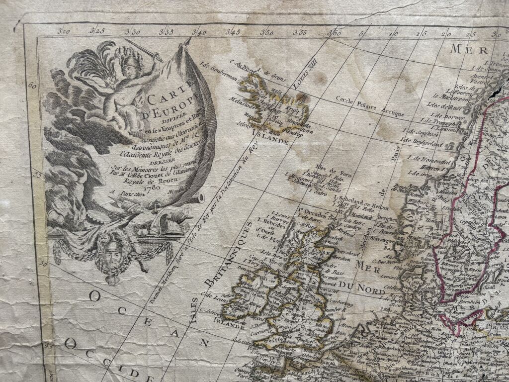 BONNE CARTE GEOGRAPHIQUE de 1780 de grande taille., RARE " CARTE D 'EUROPE, divisée en ses Empires et Royaumes, assujettie aux observations astronomique de Messieurs de l' Académie Royale des sciences, dressée sur les mémoires les plus récents par M. l' Abbé CLOUET ( * ) de l' Académie Royale de Rouen. A Paris chez Mondhare " -