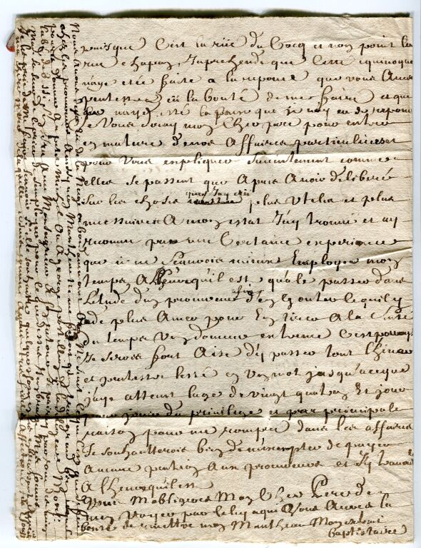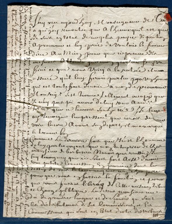 FRANCE - HISTOIRE POSTALE PRECURSEURE du 17e siècle - RARE PLI au départ de PARIS, daté du 18 octobre 1692, pour CHALON sur SAONE "en Bourgogne " - " soit rendue promptement " à Monsieur Sousselier administrateur à la Cour rue au change ou en cas d'absence à Mr Denisuy marchand logé es même rüe ".