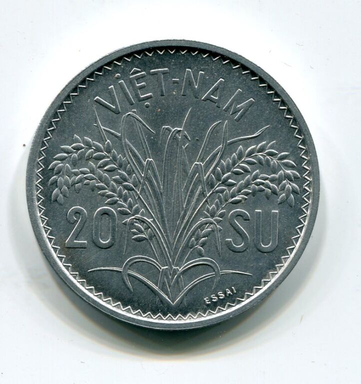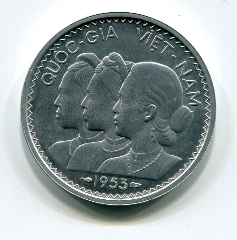 EMPEREUR BAO DAI 1949-1955 - QUOC GIA - 20 SU 1953 aluminium, atelier de Paris, Graveurs Bazor et Cochet. Trois effigies, accolées de profil, représentant les provinces de l'Annam, la Cochinchine et le Tonkin ; à l'avers valeur et gerbe de plantes.