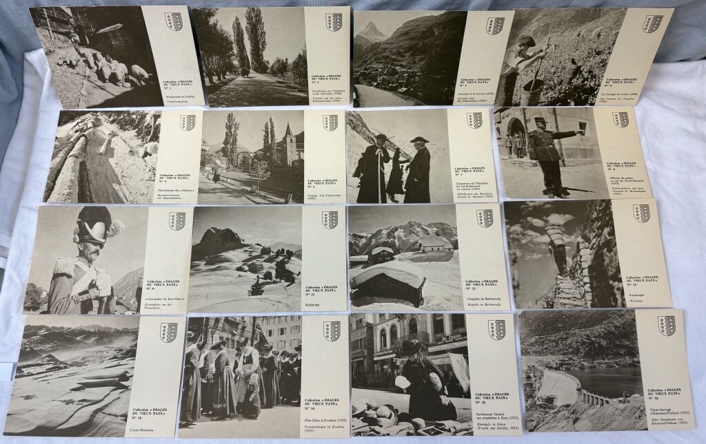 SUISSE - collection " IMAGES du VIEUX PAYS ", édition du Musée des costumes valaisans. Série complète de 48 (quarante huit) cartes postales sur la vie quotidienne, les gens, les métiers des années 30 à 40. Remarquables témoignages et reflets d'une époque pas si lointaine mais tellement différente d'aujourd'hui.