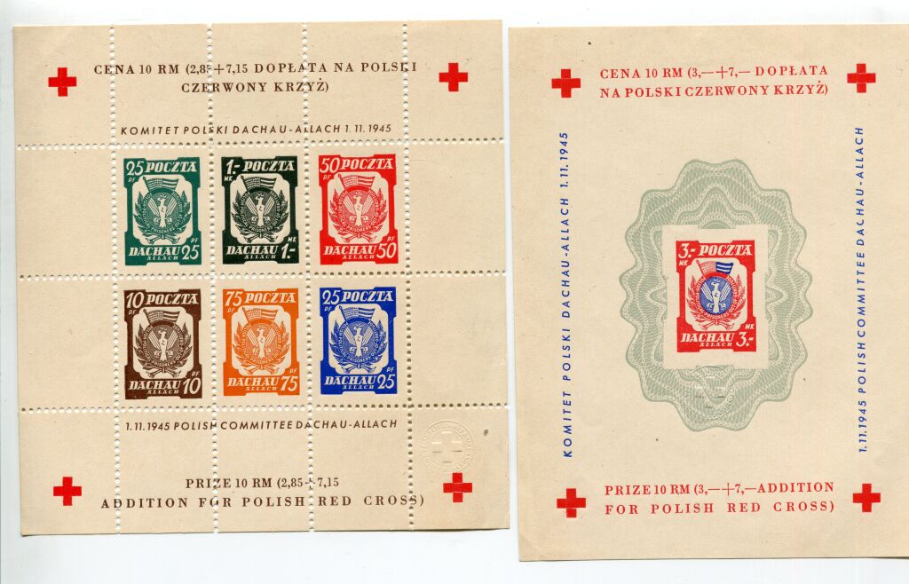2e Guerre Mondiale - COMITE POLONAIS de la CROIX ROUGE du Camp de concentration de DACHAU ALLACH - Émission du 1er novembre 1945 de deux blocs feuillets à surtaxe au profit du comité. :