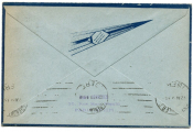 Affranchissement 50c auberge des PTT + 15c semeuse brun, cachet à date type horoplan LE BOURGET PORT AERIEN 12 novembre 1937 + GRANDE GRIFFE COMMEMORATIVE de l'inauguration, frappe en rouge 36 x 62 mm - au dos arrivée Grenoble, flamme en continu lignes, même jour. - sur enveloppe de la Cie AIR BLEU.
