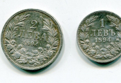 ARGENT - BULGARIE / UNION LATINE - FERDINAND 1er PRINCE sous la souveraineté turque - Deux monnaies à son effigie, profil à gauche : un Lev 1894 KB (atelier de Kormoczbanya) TTB/SUP + 2 Leva 1894 KB SUP.