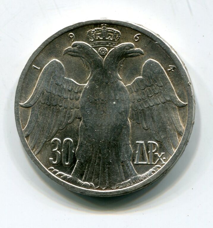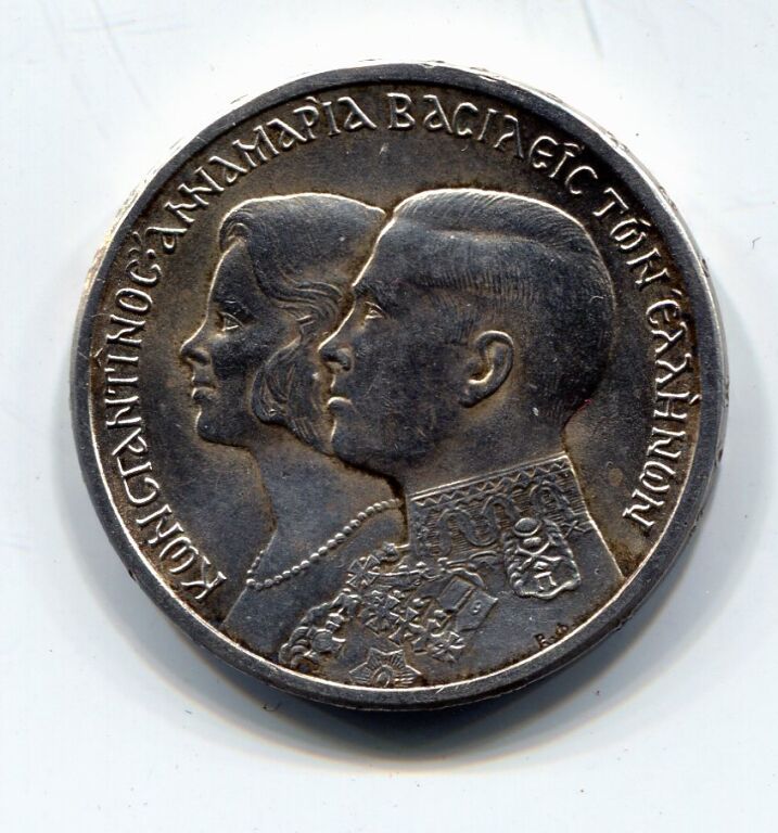 ARGENT - GRECE 30 Drachme 1964 - Monnaie commémorative du Mariage du Roi CONSTANTIN II avec la Reine Anne Marie - 30 mm - 12 grammes.