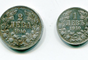 Deux monnaies à l'effigie du Roi, profil à droite, œuvre du sculpteur-médailleur autrichien Stephan SCHWARTES : 1 Lev 1910 + 2 Leva 1910 - Les deux SUP