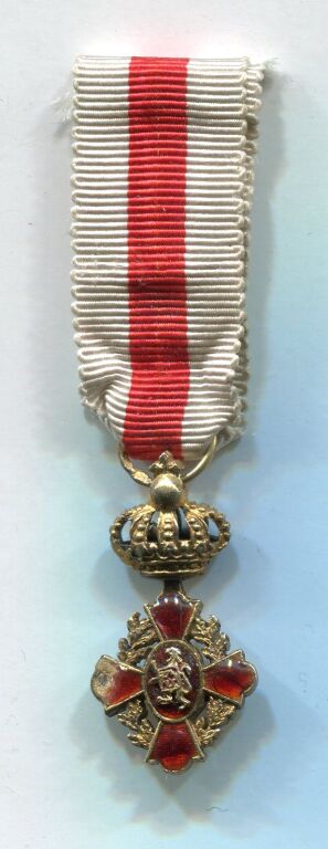 EN VERMEIL, belle fabrication ancienne croix couronnée (magnifique couronne ajourée), 4 branches émail grand feu rouge, Lion apposé en centre, couronne de lauriers en pourtour.