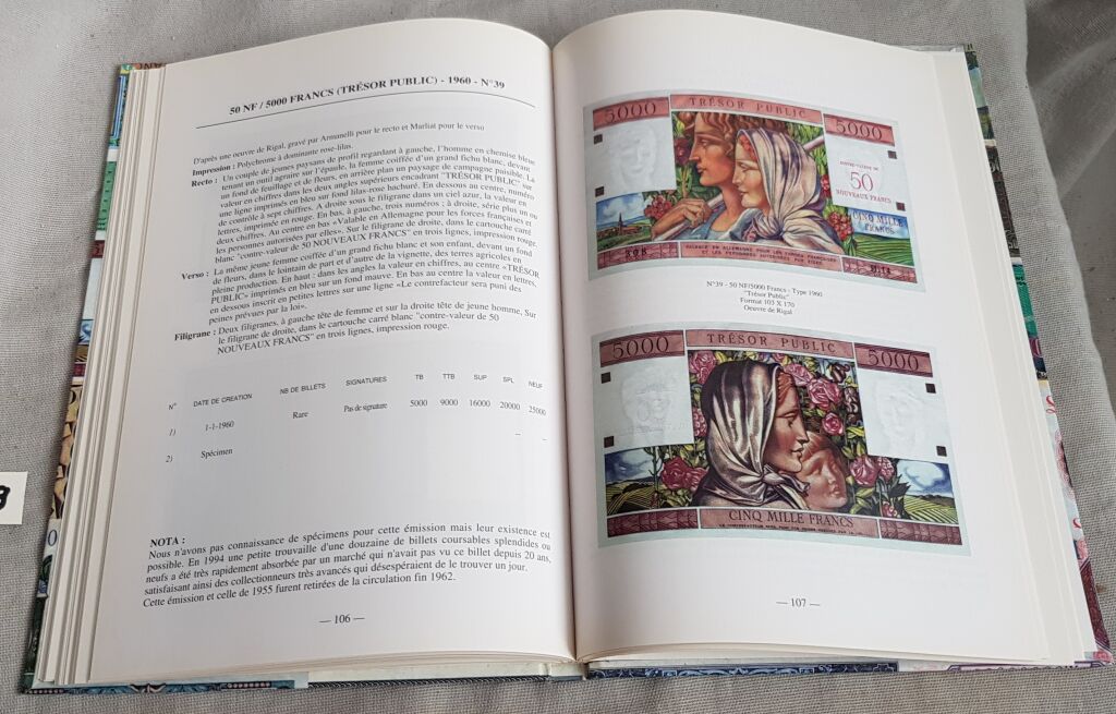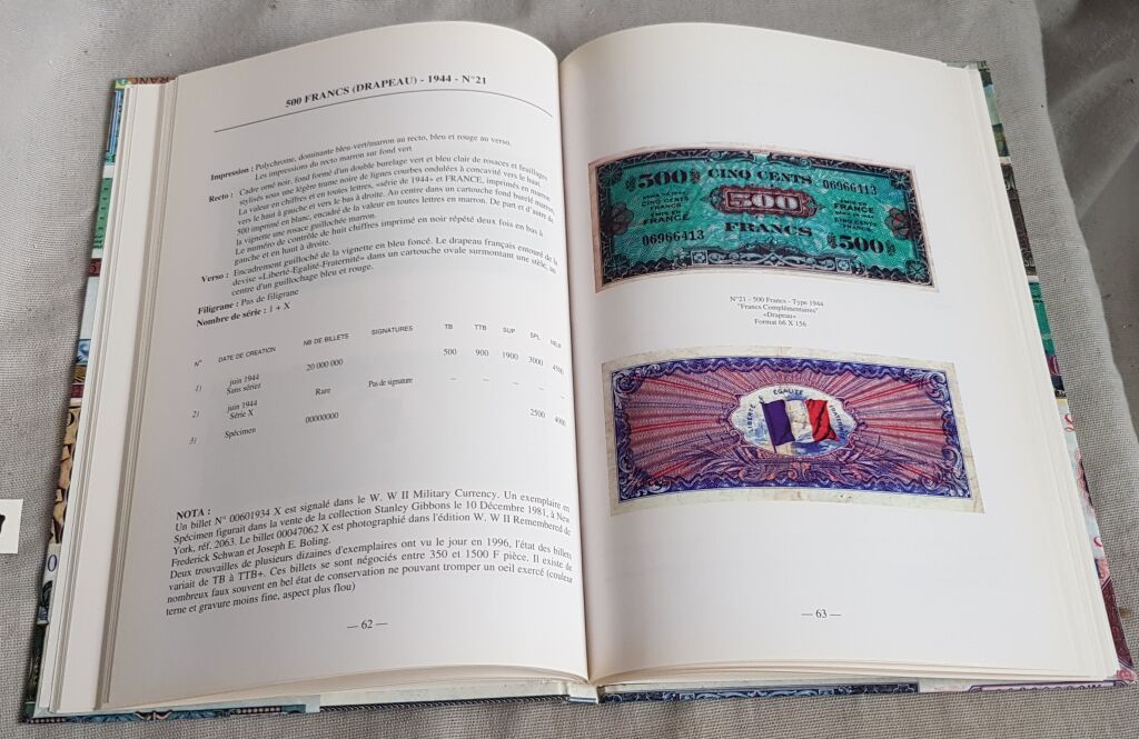 répertoire et cotation suivant 5 états de conservation, avec photo couleur recto et verso, de tous les billets du Trésor. Un ouvrage qui fait la lumière sur un sujet couvert par le secret militaire et pour lequel les archives manquent souvent. - 25 x 17 cm.