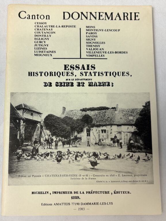 CANTON de DONNEMARIE (77) - ESSAIS HISTORIQUES et STATISTIQUES "contenant ce qu'il y a de plus curieux à connoître sur les monuments, tant anciens que modernes, les châteaux, maisons de campagne, Ets publics, population, production et situation de chaque ville ou village : DESSOY, CHALAUTRE la REPOSTE, CHATENAY, COUTANCON, DONTILLY, EGLIGNY, GURCY, JUTIGNY, LIZINES, LUISETAINES, MEIGNEUR, MONS, MONTIGNY-LENCOUP, PAROY, SAVINS, SIGNY, SOGNOLLES, THENISY, VALJOUAN, VILLENEUVE les BORDES, VIMPELLES;