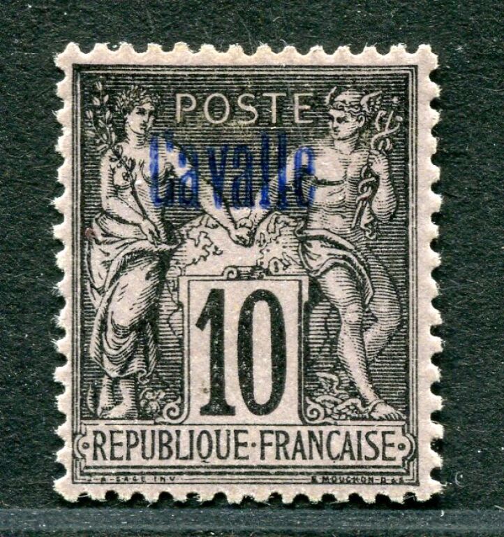CAVALLE, bureau français en Grèce 1893 - N° 4, 10c de France au type I avec surcharge CAVALLE en bleu - neuf *, bon centrage.