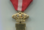 ESPAGNE - CROIX de L' ORDRE du MERITE MILITAIRE ROUGE ( RIOJA CRUZ ) de Première classe pour MERITE de GUERRE - Modèle monoface, émail grand feu 60 x 42 mm ; croix grecque à branches surmontées d'une couronne dorée sur lesquelles figure en centre une pastille rajoutée en émail rouge et blanc, filets or, le blason d'Espagne.