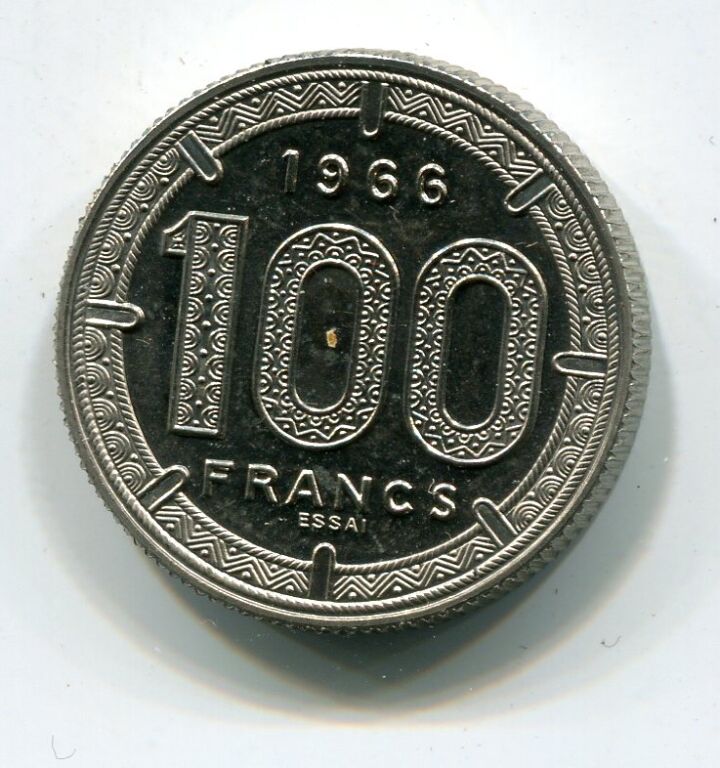 ETAT du CAMEROUN - 100 Francs trois antilopes 1966 - ESSAI avec le mot ESSAI gravé dans le métal - Fleur de coin, 12,06 grammes - Tirage 1 200 pièces.