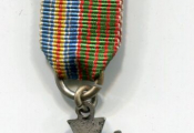 FRANCE 1ère Guerre Mondiale - RARE CROIX de GUERRE MINIATURE UNIFACE AVEC RUBAN MIXTE moitié croix de guerre / moitié médaille des blessés militaires.