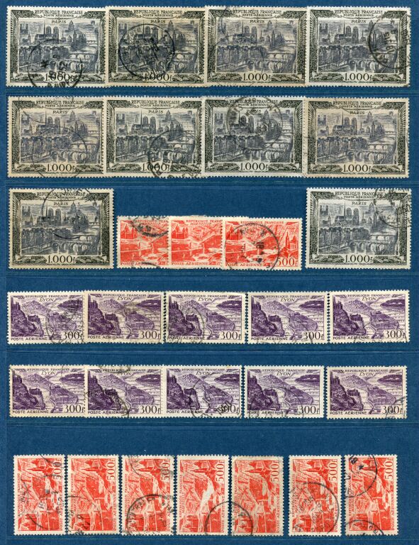 avion 26 300 F Lyon + Av 27 500 F Marseille + grand format Av 29 1000 F Paris + Av 32 500 F Fouga magister + Av 33 1000 F Provence + Av 37 1000 F Alouette.