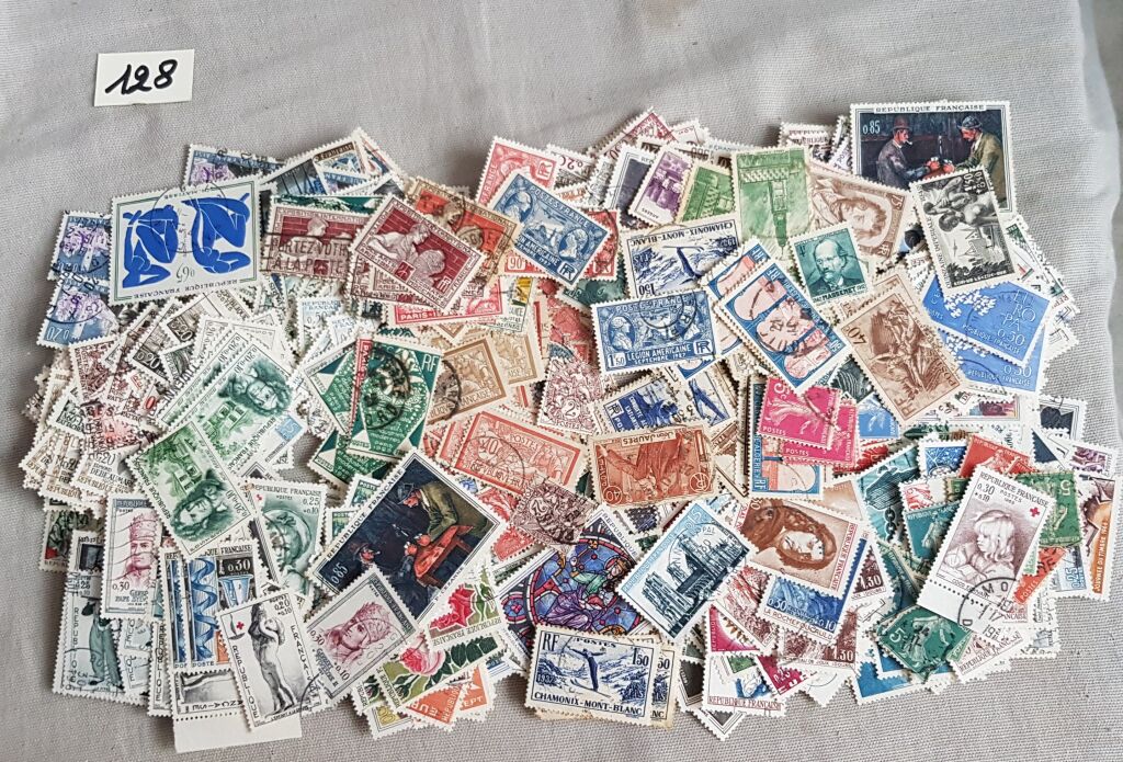 FRANCE - BOITE DE VRAC MILLE ( 1000 ) timbres essentiellement grands formats oblitérés sans papier, des années 1900 aux années 60.