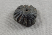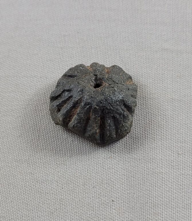 FRANCE - MONNAIE PREMIERE ou OBJET VOTIF du MONDE CELTIQUE, 2e à 1er siècle avant Jésus Christ - TRES GROSSE ROUELLE TRONCONIQUE, COURONNE à PLAN CONVEXE et à pans coupés avec MOTIFS de CANELURES verticales ALTERNEES sur tout le pourtour - . plomb, diamètre extérieur 30 /28 mm ; épaisseur 12,5 mm - diamètre de l'axe 2,5 mm. -