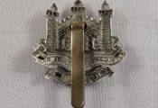 Bimétallique en une seule pièce plaqué argent et bronze. Modèle d'officier ou sous officier de 1909 à 1914. La banderole Afrique du sud était portée en signe de distinction honorifique pour les volontaires du 3e régiment ayant combattu lors de la guerre des Boers aux cotés du SUFFOLK REGIMENT - Complet avec sa fixation d'origine 49 x 40 mm.