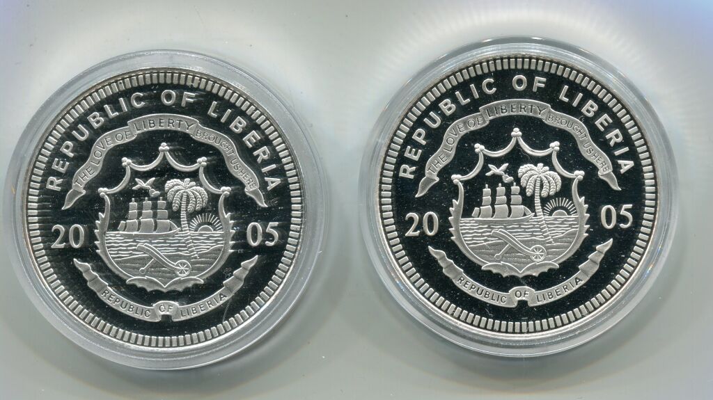 Les deux monnaies fleurs de coins chacune sous capsule ; métal argenté belle épreuve. 32 grammes - 40 mm - avec leurs certificats.