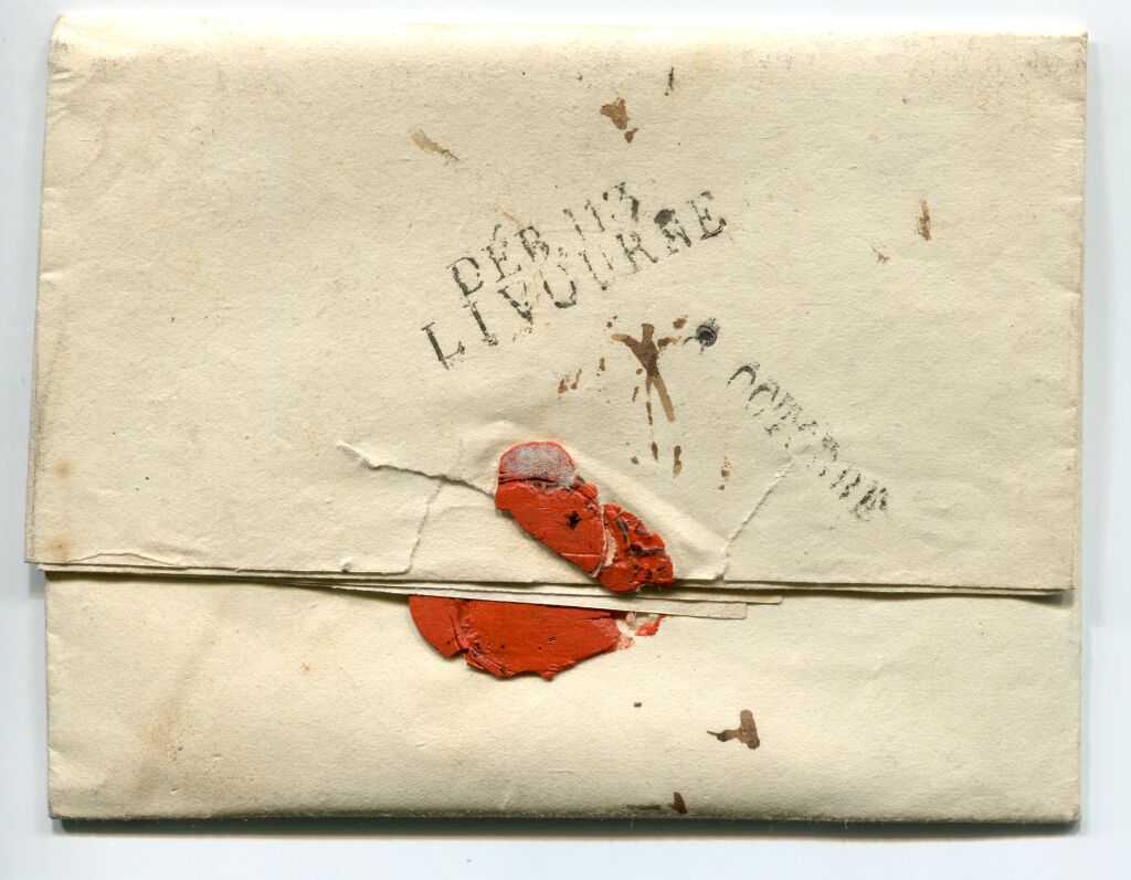 MARQUE DE DEBOURSE, frappe au dos en noir 2 lignes : " DEB. 113 / LIVOURNE ".