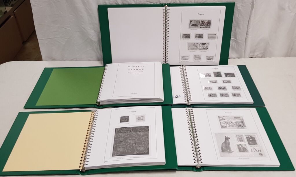MATERIEL FRANCE - YVERT & TELLIER, ALBUM SUPRA LUXE 22 anneaux à mécanisme d' ouverture à plat - Intérieur complet années, du nouveau franc 1960 à 2008, avec 5 reliures vertes (réf 1388) avec leurs boitiers, solides feuilles 190 g avec pochettes Limpid installées pour une collection sans charnière.