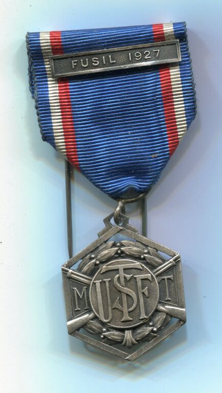 Ruban bleu roi, liserés tricolores à gauche & droite, agrafe " FUSIL 1927 ".