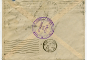 Au verso, grand cachet violet COMMISSARIAT des FETES - COMMISSARIAT GENERAL de L'EXPOSITION COLONIALE", flamme machine Flier employée comme arrivée (et réexpédition) 7 lignes ondulées, bloc dateur PARIS X quai de Valmy 7 - IX - 1931. Également flamme machine Krag comme arrivée slogan en continu : " Pour Paris / mettre le numéro de l'arrondissement ", bloc dateur AGEN R.P. 18-IX.